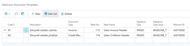 With search bar the Electronic Document Templates page can be easily found in the system, but we can also open the list from the Electronic SIgn Setup page.