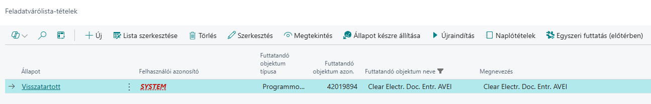 Indítsuk el a 42019894 számú Clear Electr. Doc. Entr. AVEI feladatot az Újraindítás gommbal.